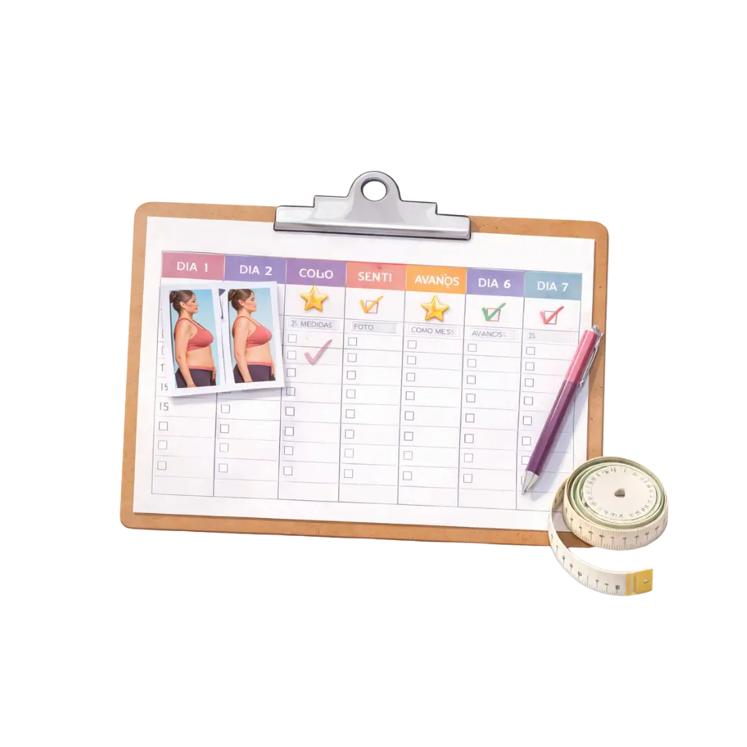 Acompanhe sua evolução dia a dia com marcações, fotos e checklists que motivam.