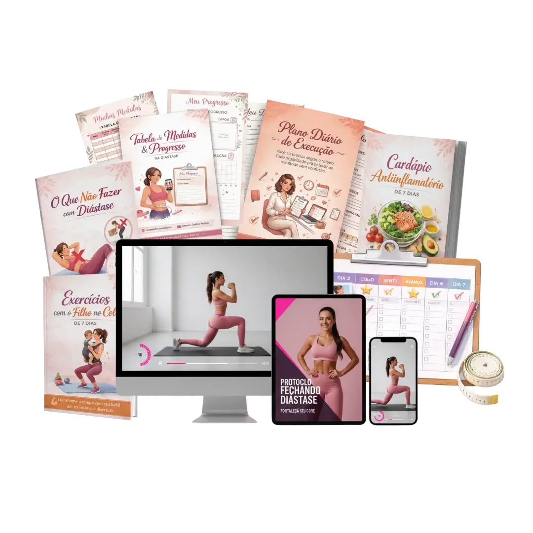 O Protocolo é um passo a passo prático com vídeo aulas intuitivas, treinos, alimentação estratégica e acompanhamento — tudo pensado pra recuperar sua barriga após a maternidade.
